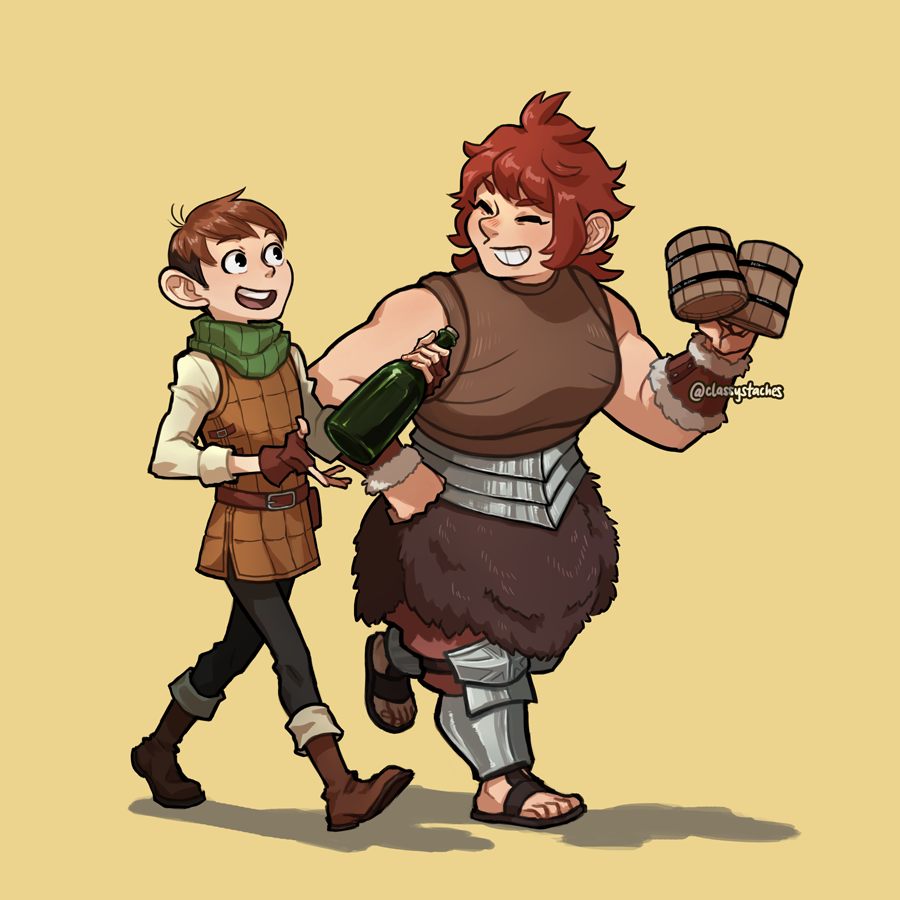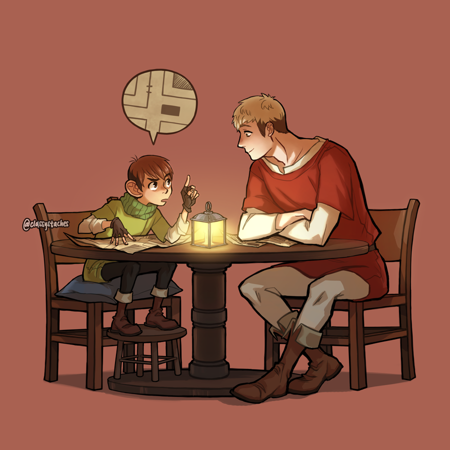 I thought it’d be fun to pick a character and then draw a series of character interactions between that character and the rest of the main cast - the character I chose was Chilchuck Tims, the half-foot locksmith of the party.