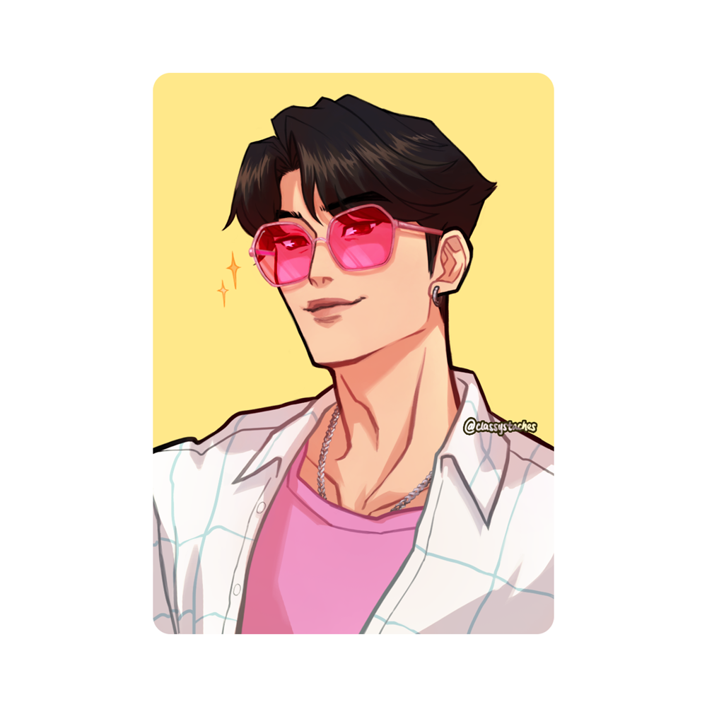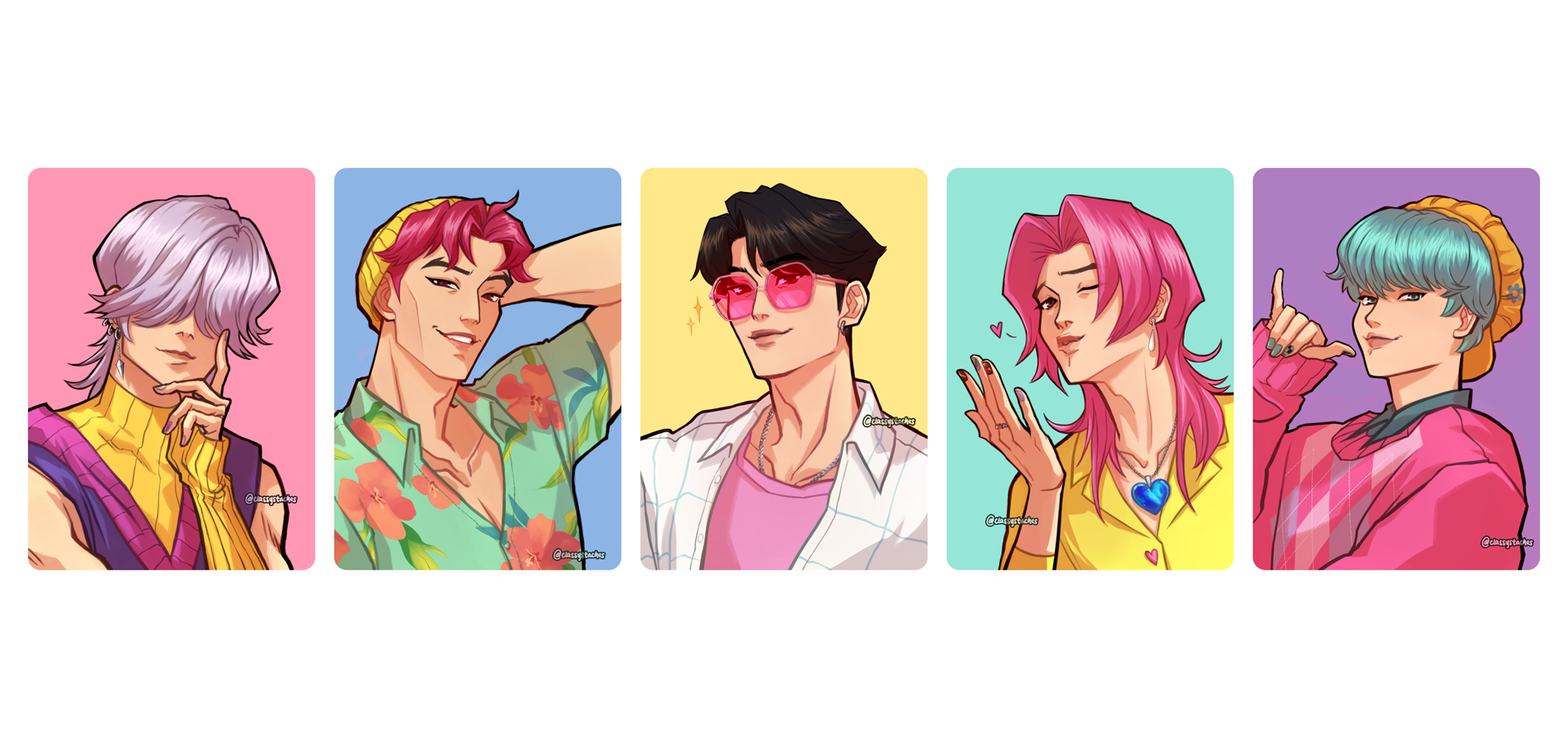 I really enjoy kpop so I absolutely loved Kpop Demon Hunters. One important part of kpop fandom is photocards (of course), so I thought it’d be fun to draw a set of photocards for the Saja Boys inspired by their “Soda Pop” outfits.