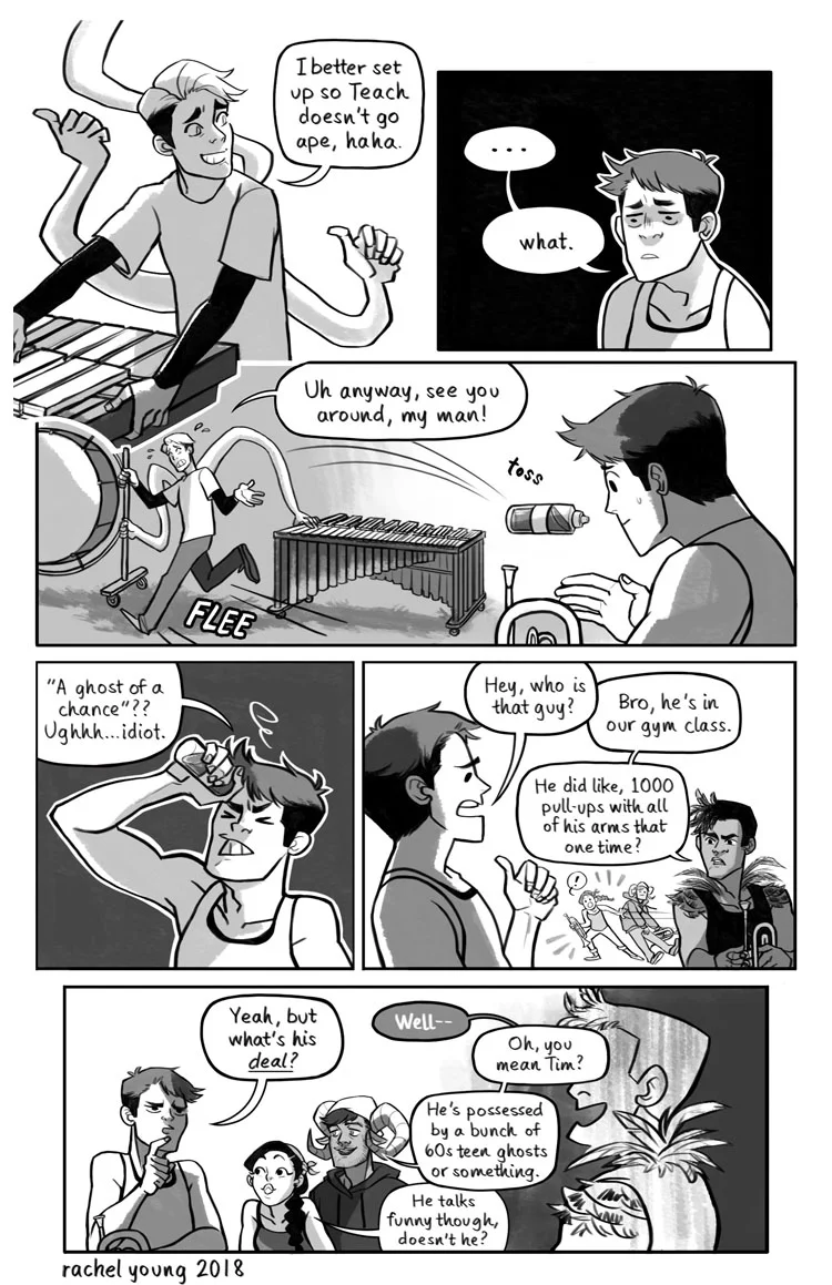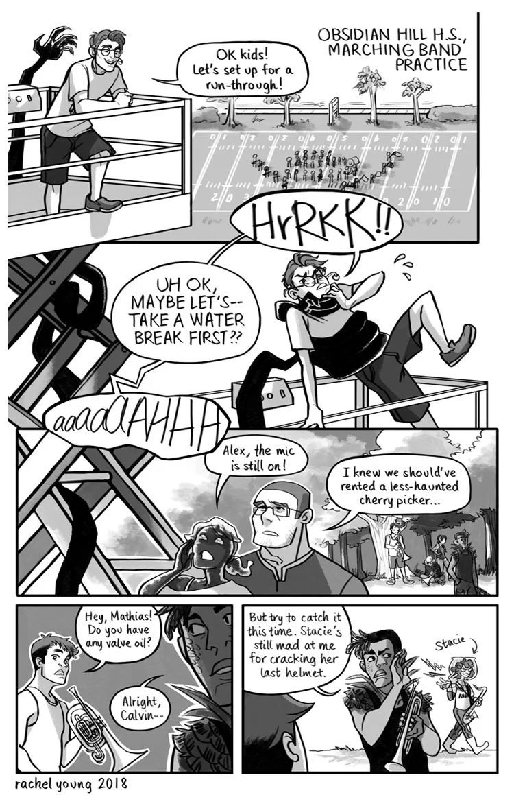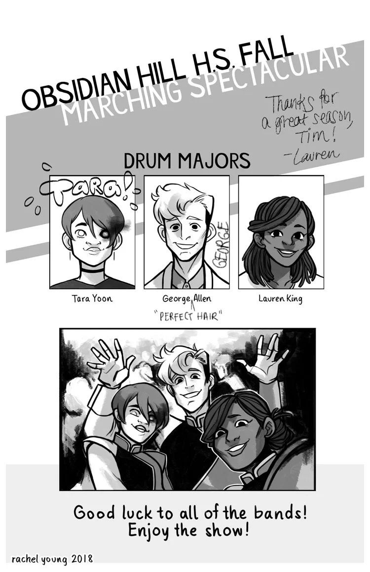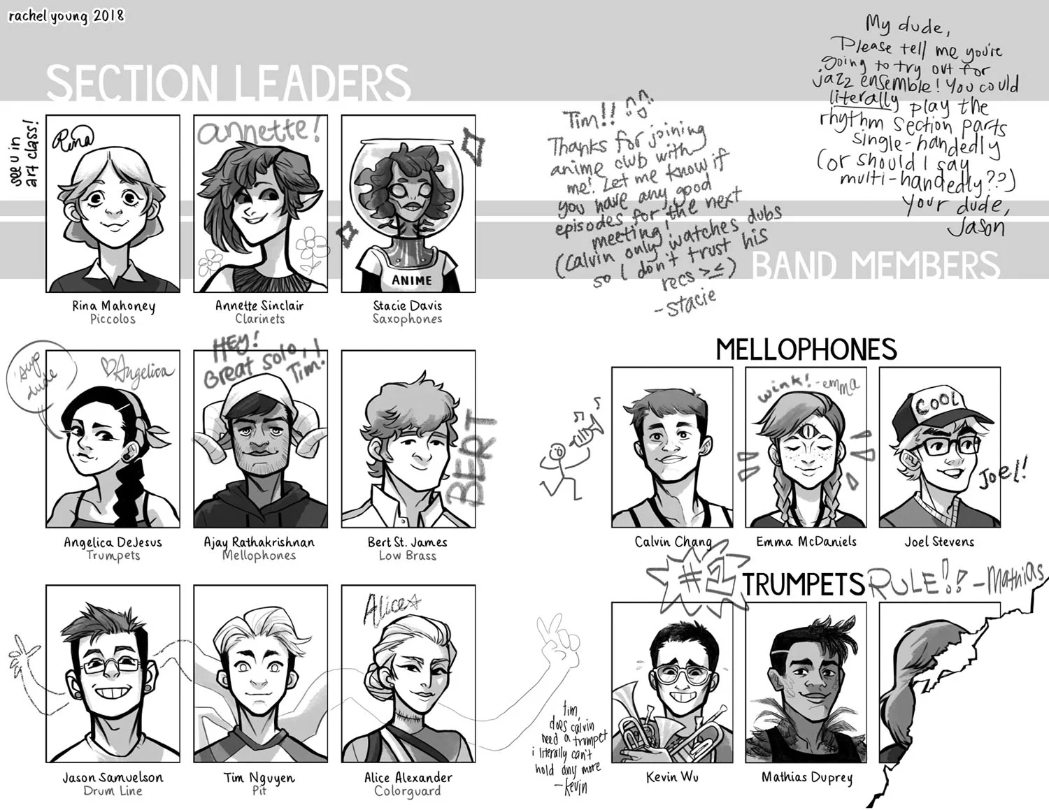 This is a mini comic I made based off of a series of characters I drew in 2016. It’s a short story about a boy in marching band who discovers that going to a semi-haunted high school is the least of your troubles when you’re just trying to impress a really cool dude.
